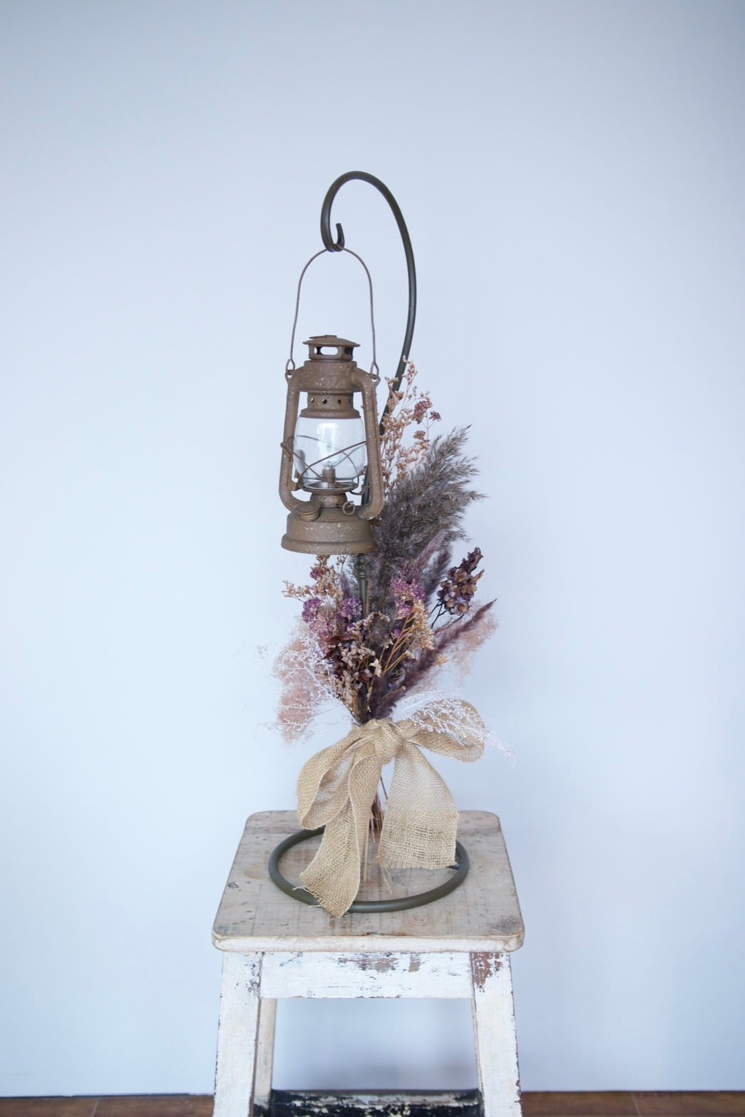 吊り下がったランプと花束のようなフォルムが特徴的で、アンティークな雰囲気漂います。